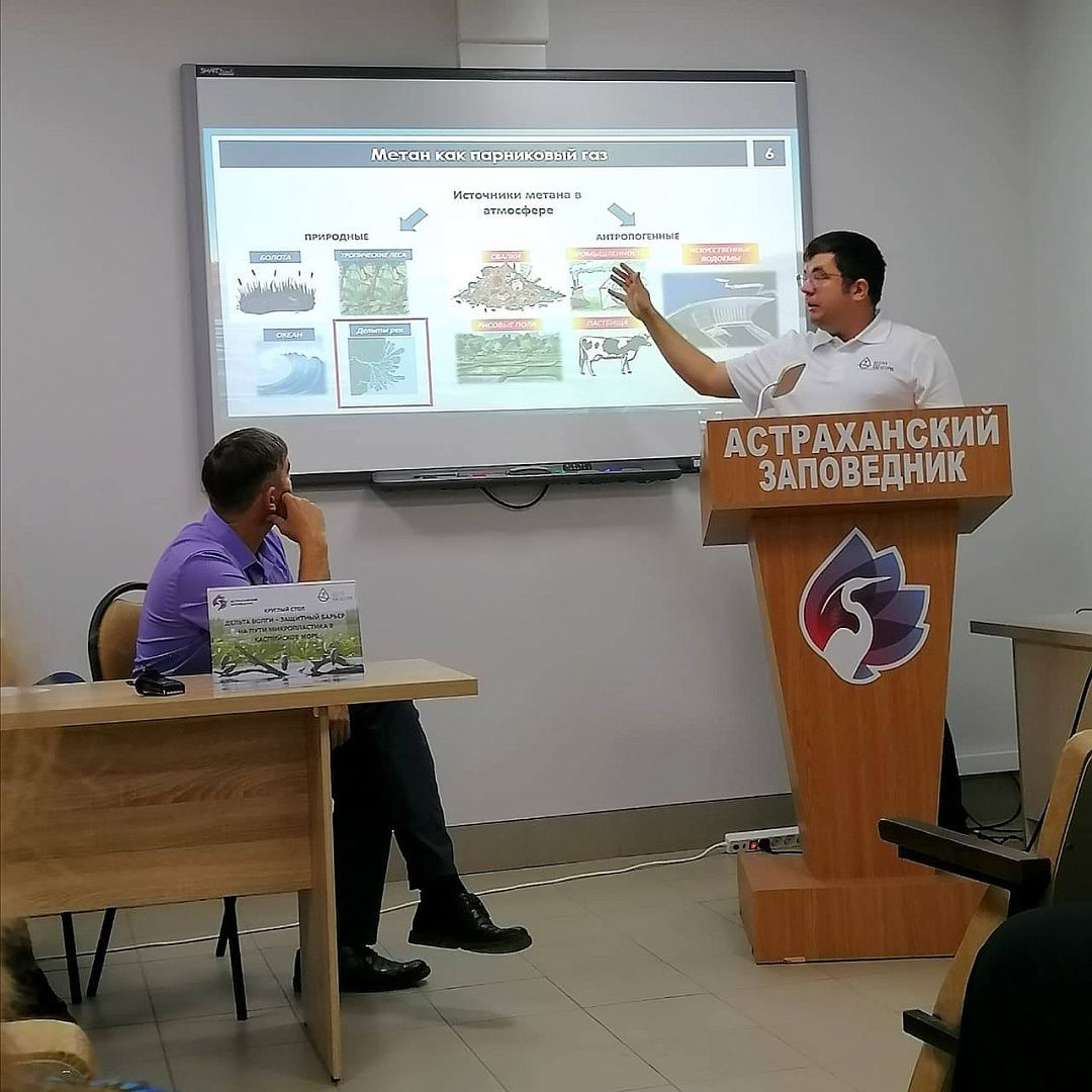 19 сентября студенты 3 курса специальности «Экологическая безопасность природных комплексов» вместе с куратором Кулишовой Анастасией Анатольевной, приняли участие в круглом столе «Дельта Волги — защитный барьер на пути микропластика в Каспийское море». Мероприятие организовали ФГБУ «Астраханский государственный заповедник» и Некоммерческий экологический фонд «Без рек как без рук».